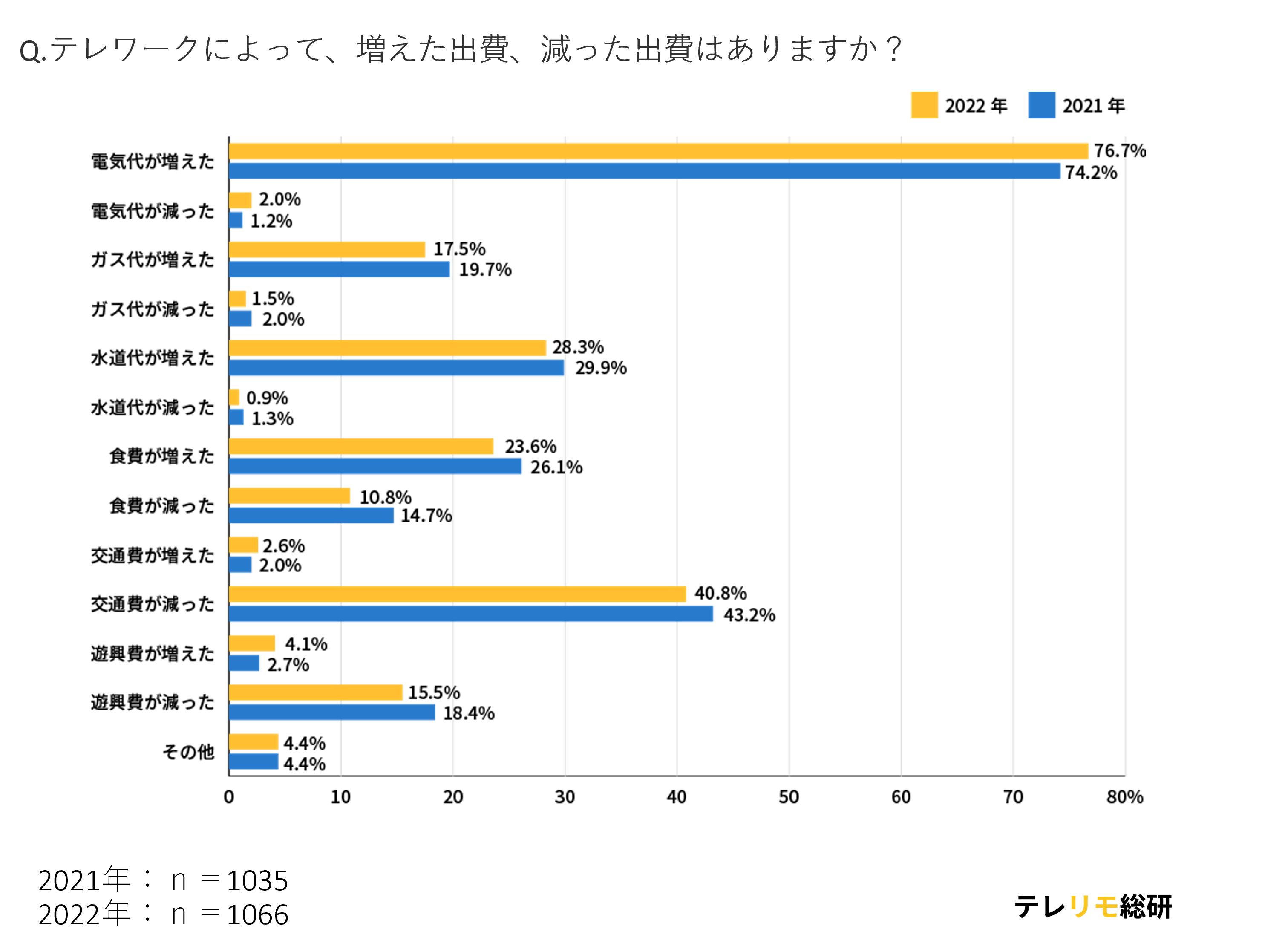 まず、昨年と同様に「テレワークによって増えた出費、減った出費はありますか?」というアンケートを実施し、