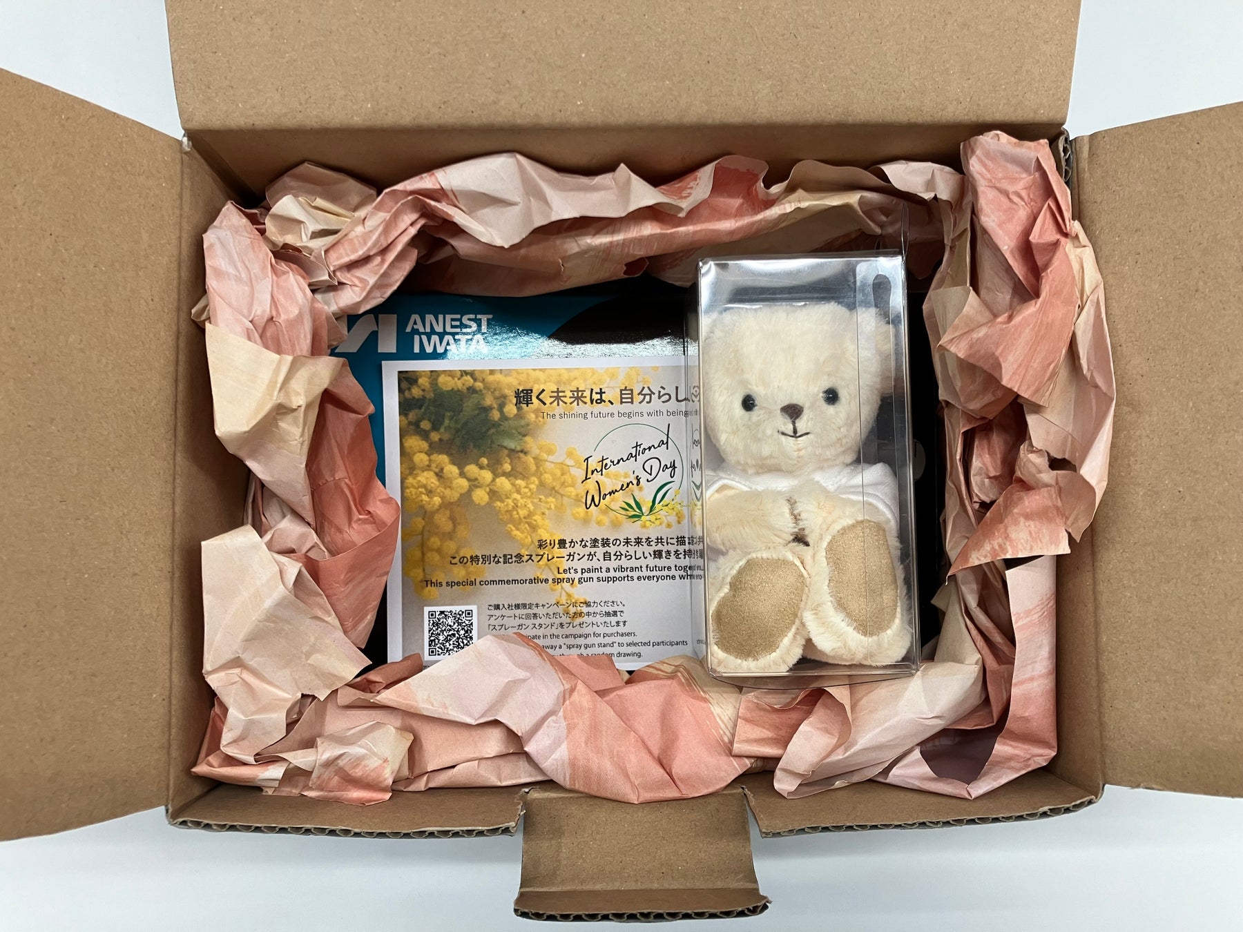 アネスト岩田からお客様へ、国際女性デーに対する想いを込めた「メッセージカード」です。アンケートにご回答いただいた方の中から抽選でスプレーガンスタンドを贈呈いたします。当選の発表は商品の発送をもってかえさせていただきます。