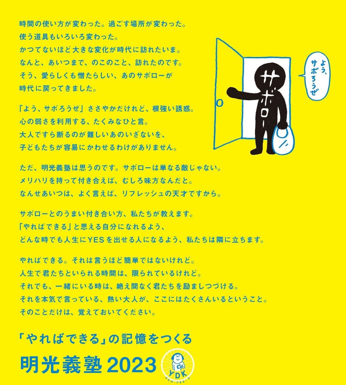 明光義塾、オリジナルキャラクター「サボロー」と「YDK(やれば・できる・子)」復活のお知らせ
