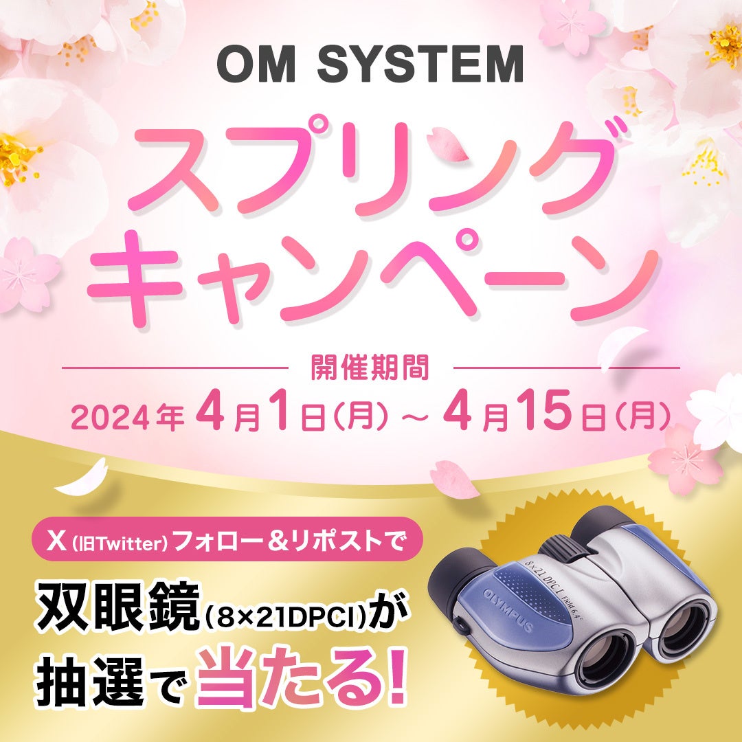 さらに、OM SYSTEM公式X(旧Twitter)ではスプリングセールを盛り上げるためのキャンペーンを開催。指定のポストをリポストした方の中から、抽選で10名様に双眼鏡 「8×21 DPC I」をプレゼントいたします。