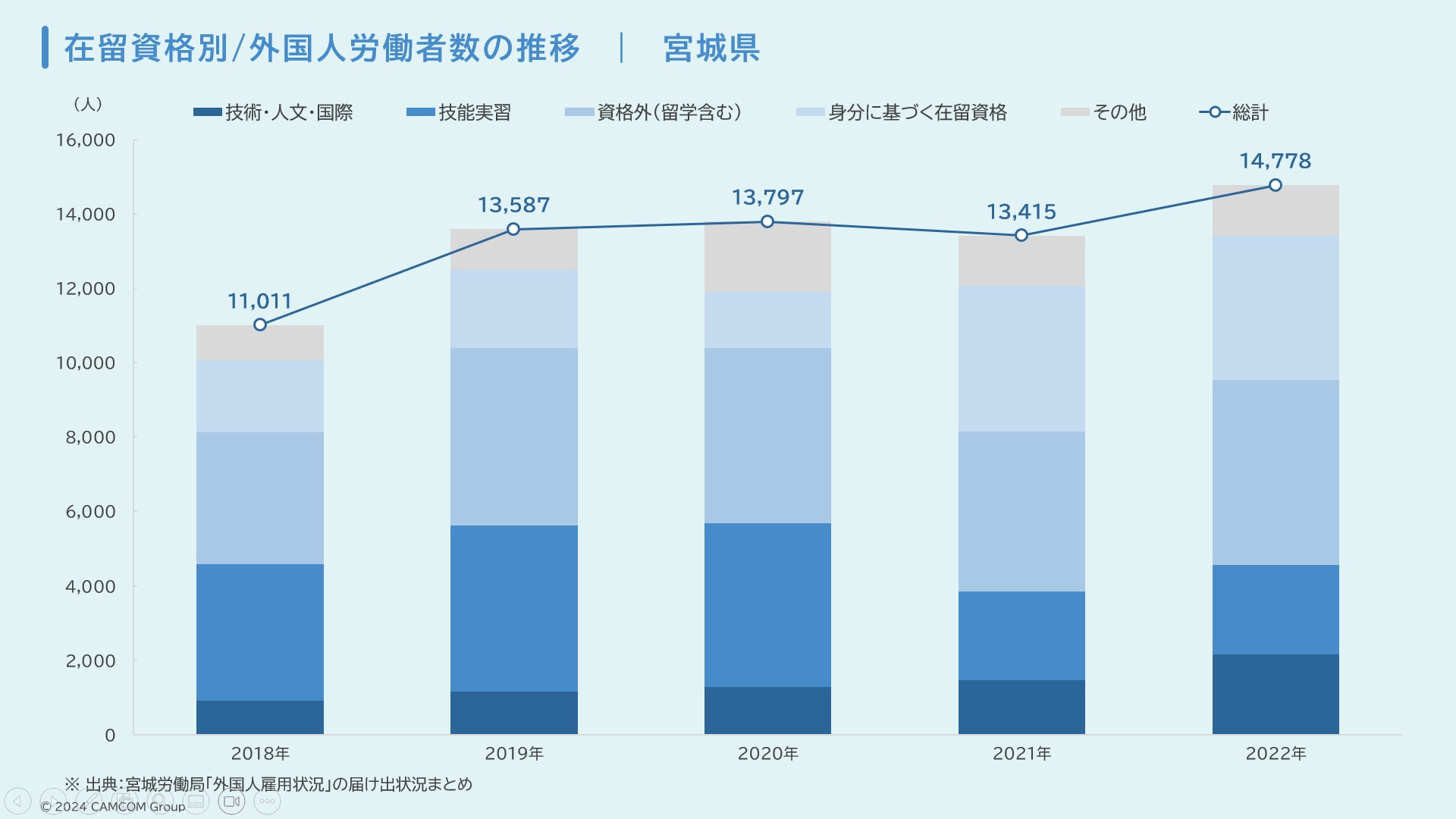 ①現状 全国/宮城県内における外国人材の雇用状況や推移を知る