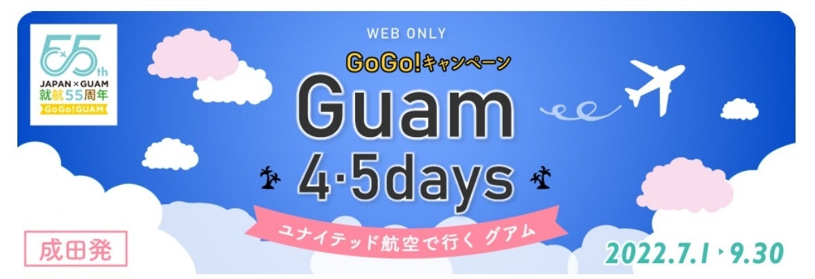 東武トップツアーズ株式会社(本社:東京都墨田区、社長:百木田康二)は、日本・グアム間に定期便が就航して55周年となることを記念し、グアム政府観光局(GVB)日本オフィスが実施する「GOGO GUAMキャンペーン」に参画し、オリジナル特典付きの募集型企画旅行(パッケージ旅行)を企画しましたのでお知らせします。