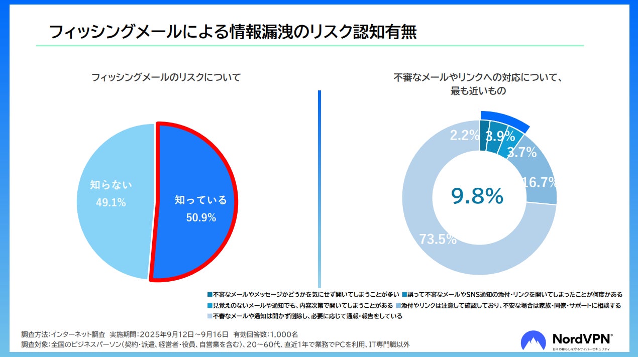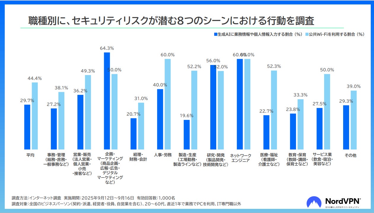 個人向けセキュリティサービスを提供するNordVPN(本社:オランダ・アムステルダム、日本代表:小原拓郎)は、全国のビジネスパーソン1,000名を対象に「ビジネスパーソンの無意識な行動に潜むセキュリティリスクに関する調査」を実施しました。
