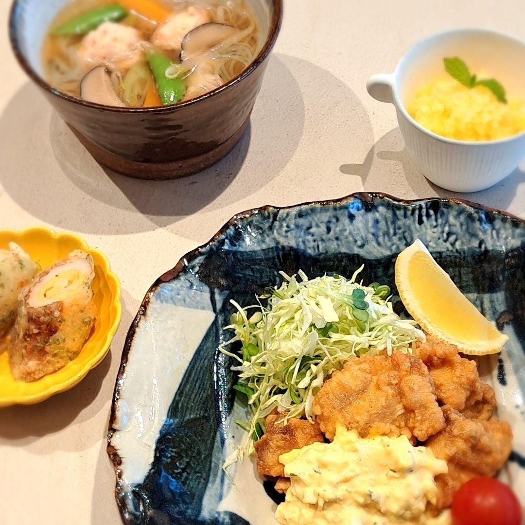 宮崎のチキン南蛮を主菜に、熊本名物のちくわサラダや太平燕(タイピーエン)も味わえる、笠原流全国味巡り御膳の第一弾!