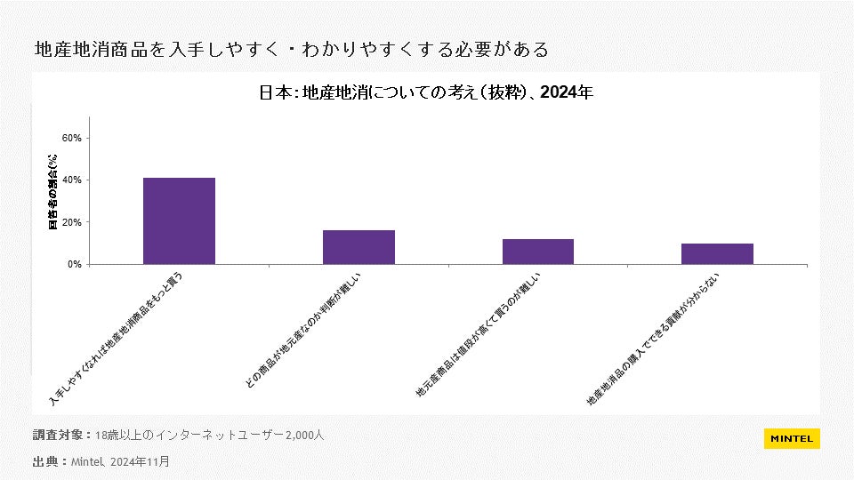 情報の出典元として【ミンテルジャパンレポート『食のローカリズム・トレンド(地産地消)– 日本 – 2025年』より】の明記をお願いいたします。