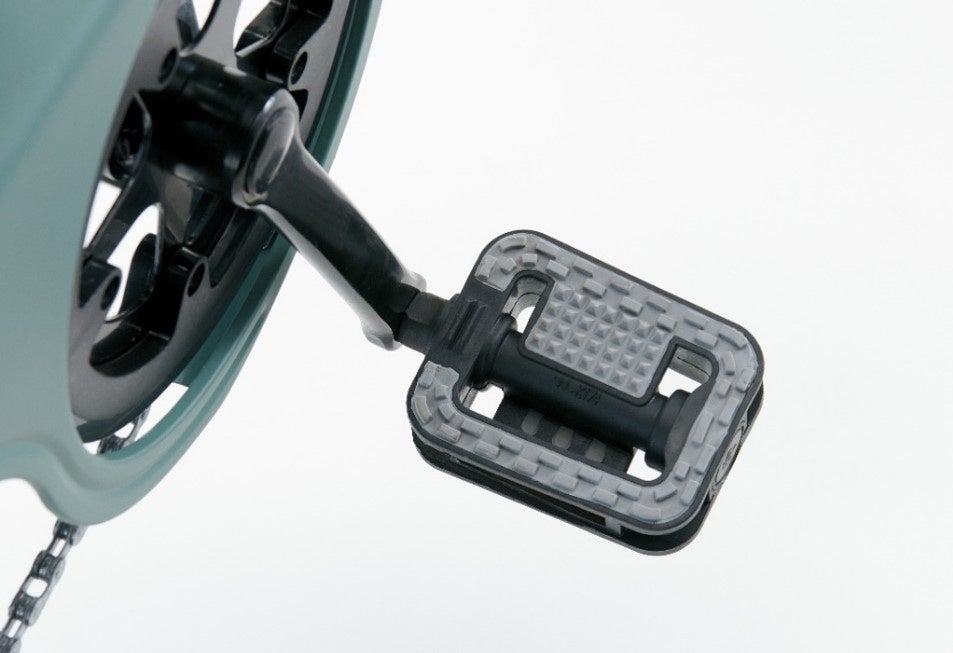 ペダルは革靴や雨の日でも滑りにくい、滑り止め付きノンスリップペダル。