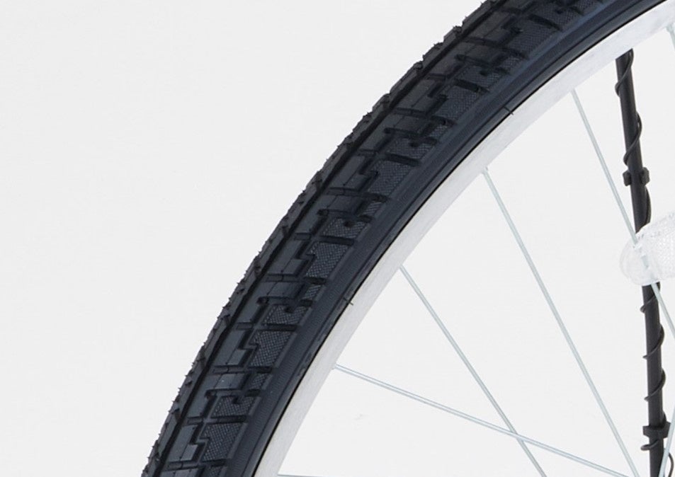 新商品のLumina-G(LMN-G7006BA)では、28インチ相当の700×40cタイヤを採用しており、高身長の方でもゆったりと乗れる設計となっています。太いタイヤは地面との接地面積が大きくなる分、走行時の安定性が高くなるというメリットがあります。また、タイヤ内の空気量が多いことから、空気圧がクッションとなって段差や凸凹道など路面状況から受ける衝撃を和らげ、乗り心地が柔らかく疲れにくいという効果もあります。