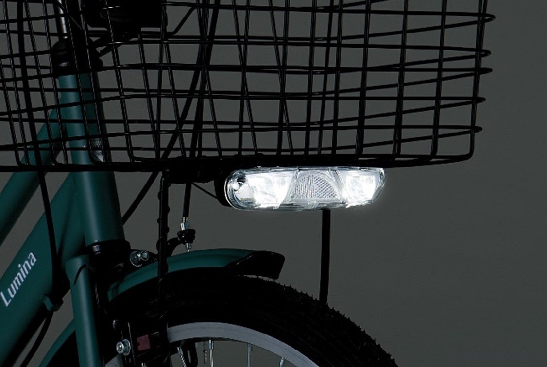 ダイワサイクルが発売するオリジナル自転車の中で最も明るい35ルクスの高輝度LEDオートライトを搭載。Lumina(ルミナ)という名称の通り、暗所でも明るく輝き、他者にその存在を知らせて接触事故を防止します。