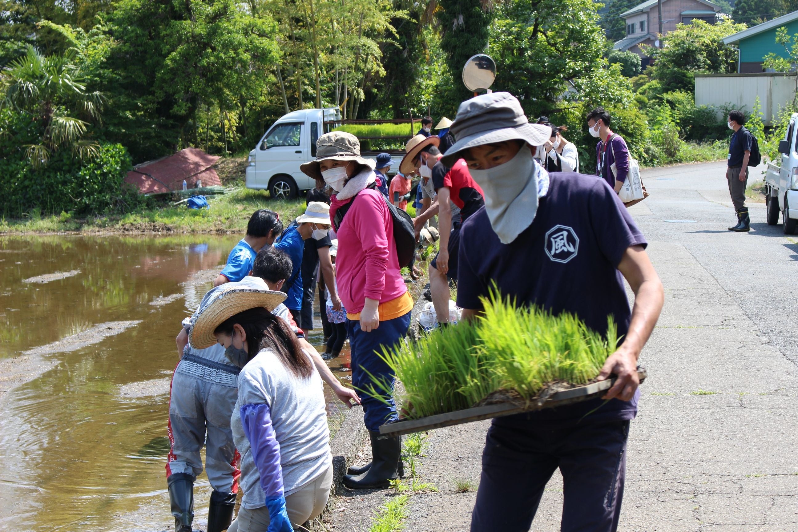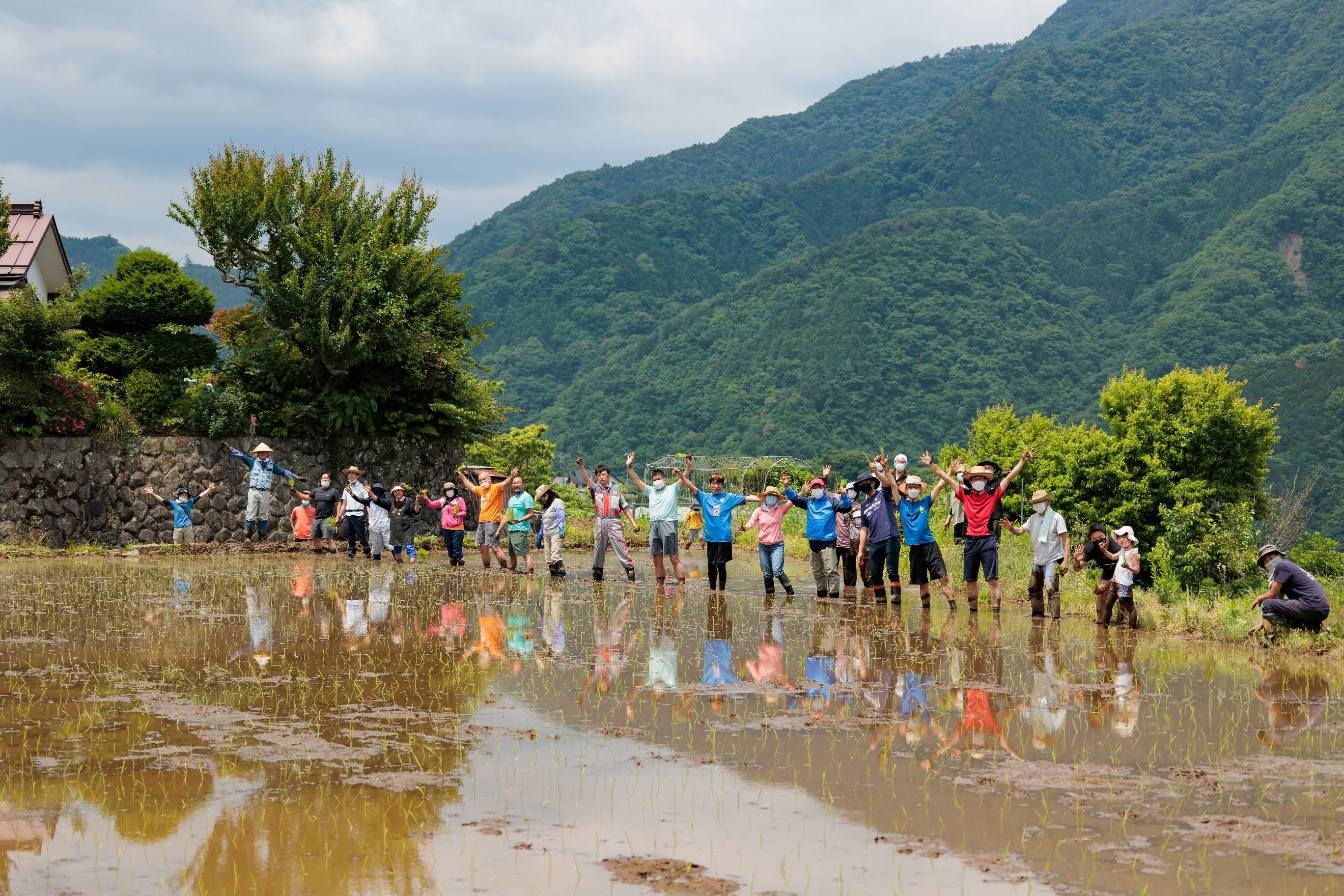 当日は晴天に恵まれ、約20組40名の体験希望者が参加しました。「青根酒米作りの会」のスタッフによる指導のもと田植え作業に臨み、田んぼのあちこちから子どもたちの明るい声が響き渡り、参加者からは笑顔がこぼれるなど、一体感が生まれていました。