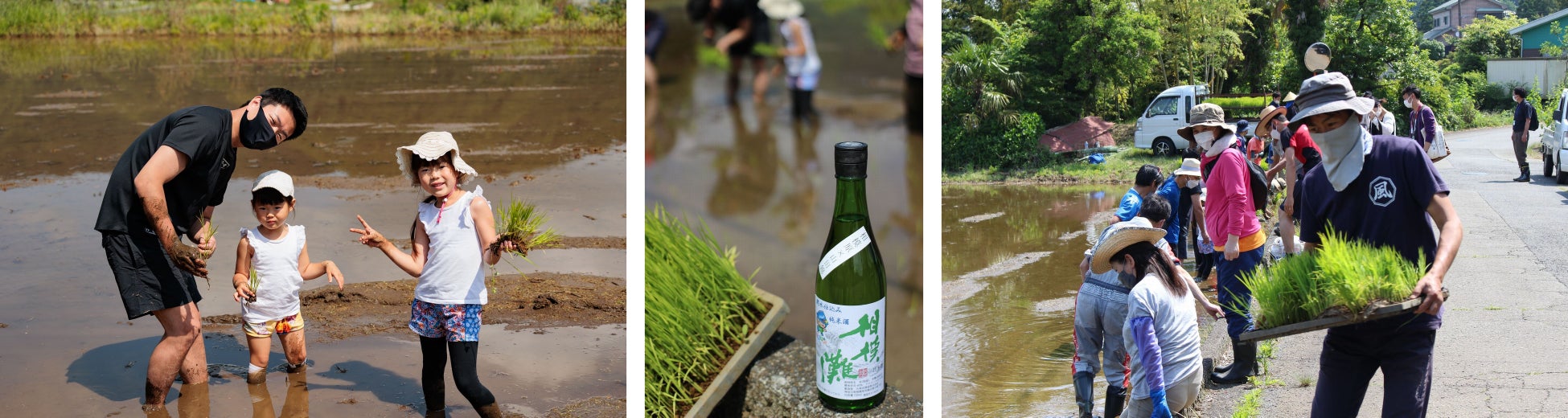 このたび、この地元産日本酒造りの2年目の取組と地域活性化に向け、6月5日(日)に、地元の「上青根農園会」と「青根酒米作りの会」が主体となり、市内外から参加した家族連れなどともに、酒米(山田錦)の田植えを行いました。