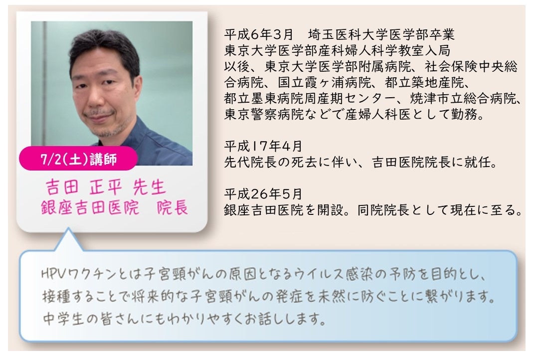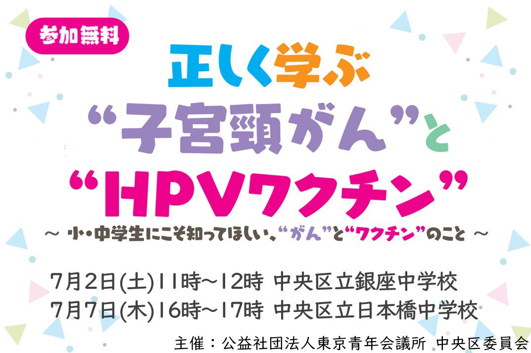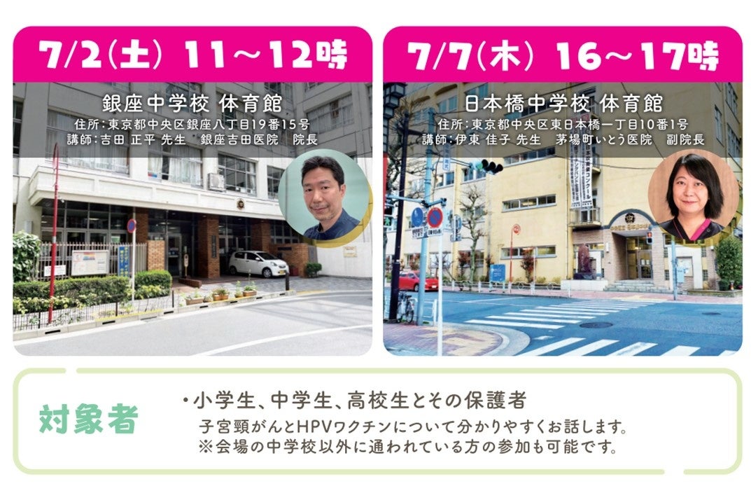 #子宮頸がん #HPVワクチン 「がん」と「ワクチン」を正しく学ぼう!小・中学生にこそ知ってほしい!【7月2日(土)中央区立銀座中学校・7日(木)中央区立日本橋中学校にて開催】