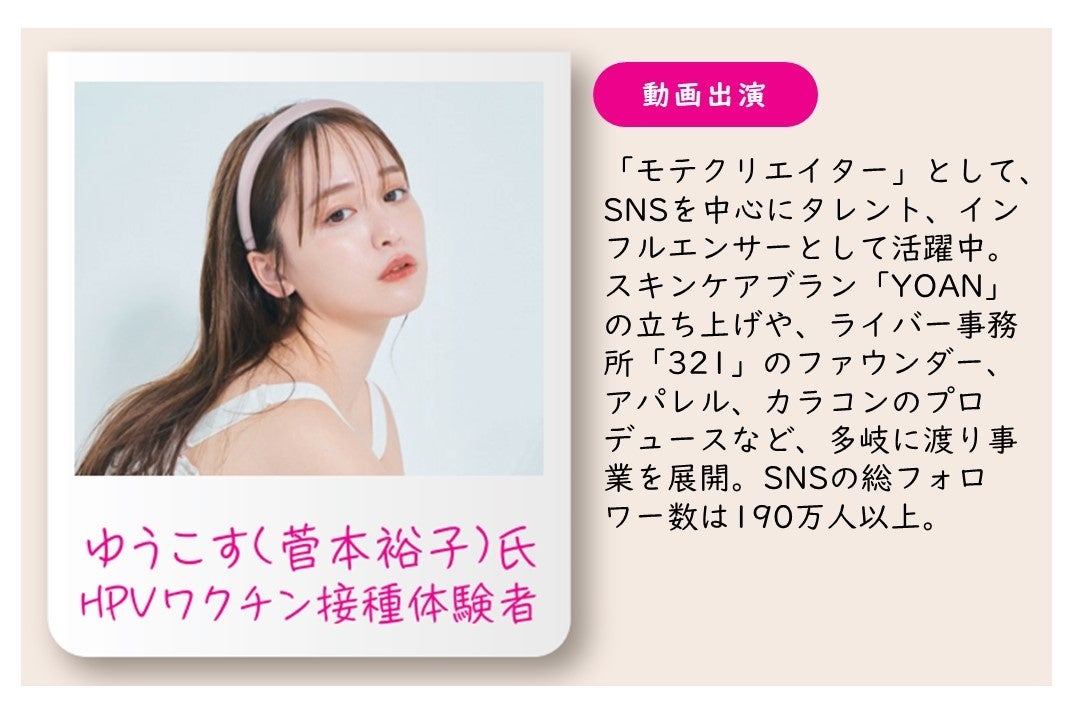 ゆうこす(菅本裕子)氏(HPVワクチン接種体験者)