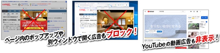 フィッシングサイトや悪意ある広告からも保護。買い切り型(永続的に利用可能)で、世界2,500万人以上が利用する定番の広告ブロックソフトです。