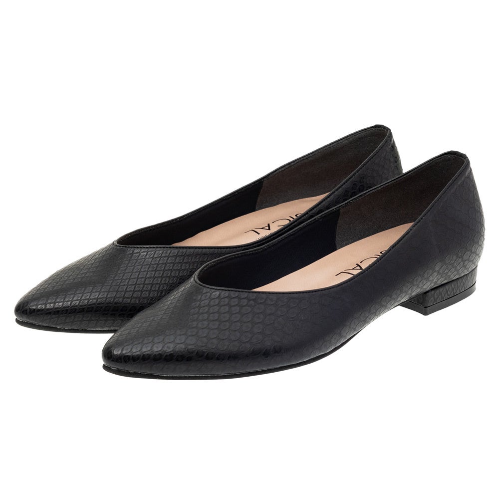 ファルファーレのブラックパンプスは、耐久性としなやかさを兼ね備えていて、人工皮革素材の4つのバリエーション<スエード調・スムース・ラムスネーク・エナメル>から選べるので、気分やコーディネート、シーンに合わせていただけます。