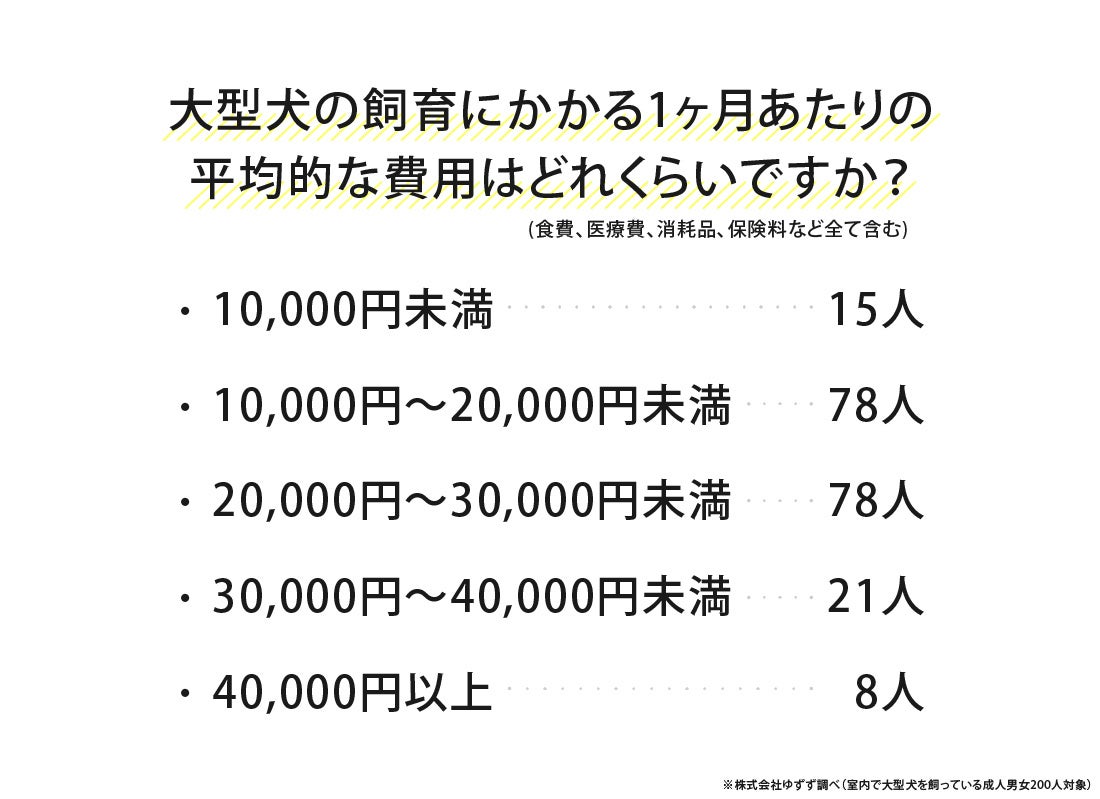 大型犬の室内飼育、月の費用は「1万〜3万円未満」が約8割|飼い主200人調査【コノコトトモニ】