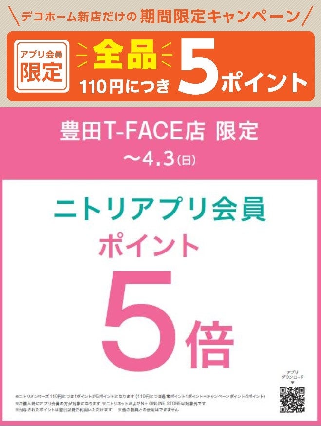 ■ニトリアプリ会員限定特典:全品110円につきポイント5ポイントプレゼント