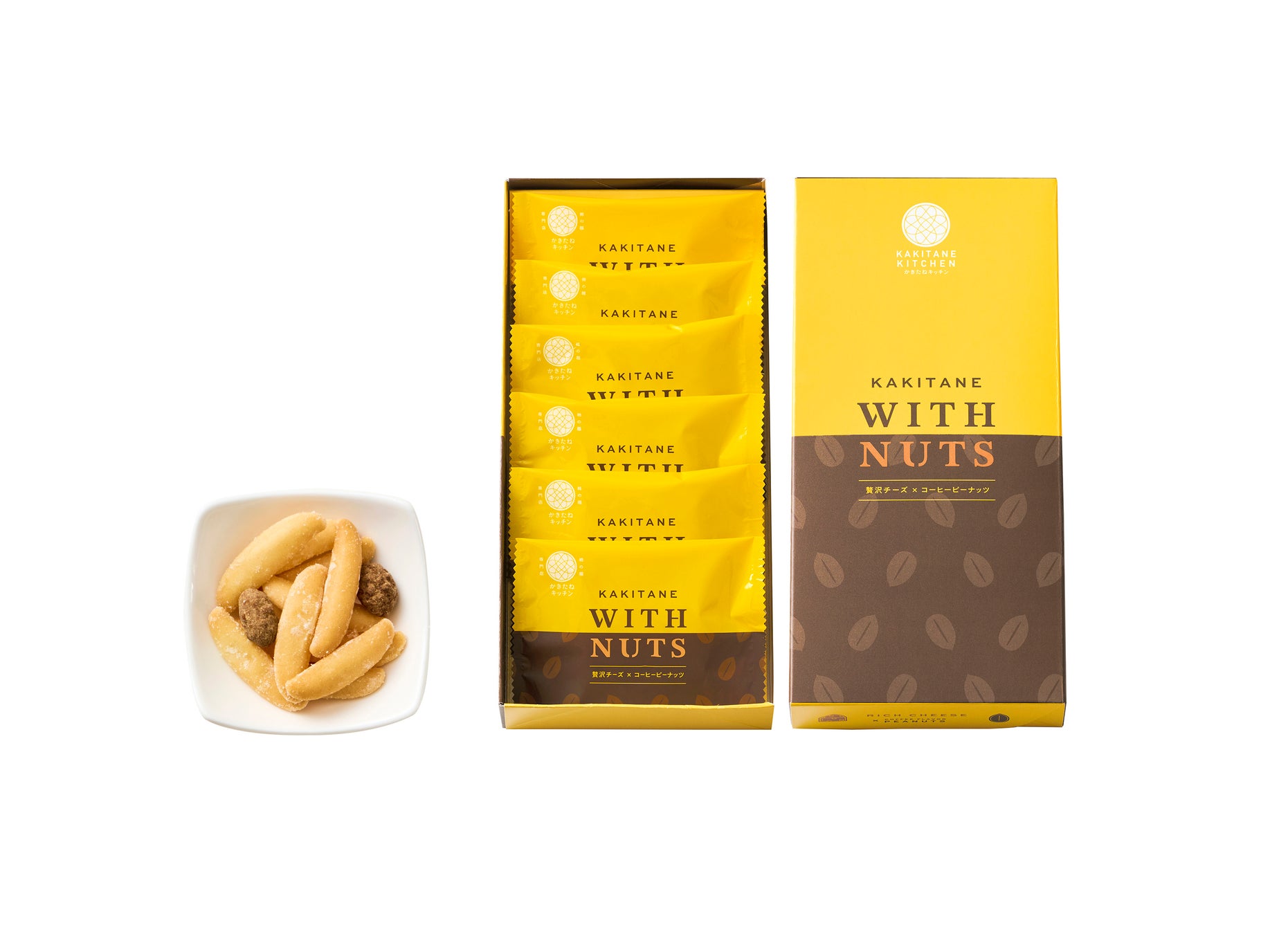 かきたねキッチンから、柿の種とナッツのマリアージュが楽しめる人気シリーズ「かきたねWITH NUTS」がリニューアルして登場します。新しいラインナップは『贅沢チーズとコーヒーピーナッツ』『海鮮風塩だれとかつお節カシューナッツ』の2種。2年の歳月をかけて試行錯誤を重ねた、渾身の逸品です。