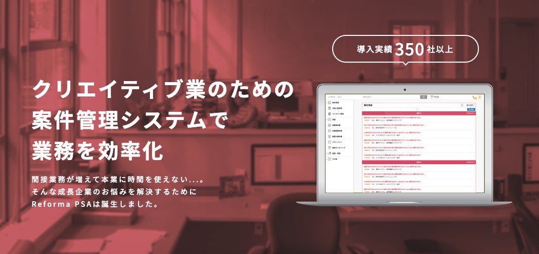 クリエイティブ業に特化したクラウドERPであるReformaは累計350社以上に導入され、業務管理や案件管理に貢献してきました。今後もユーザー様の声を元に継続して機能改善を行い、より多くの企業様における生産性向上に寄与してまいります。