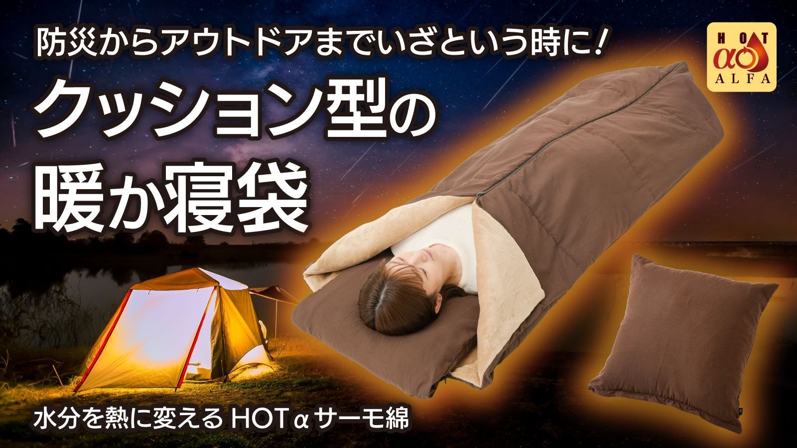 クッション型の暖か寝袋 水分を熱に変えるHOTαサーモ綿