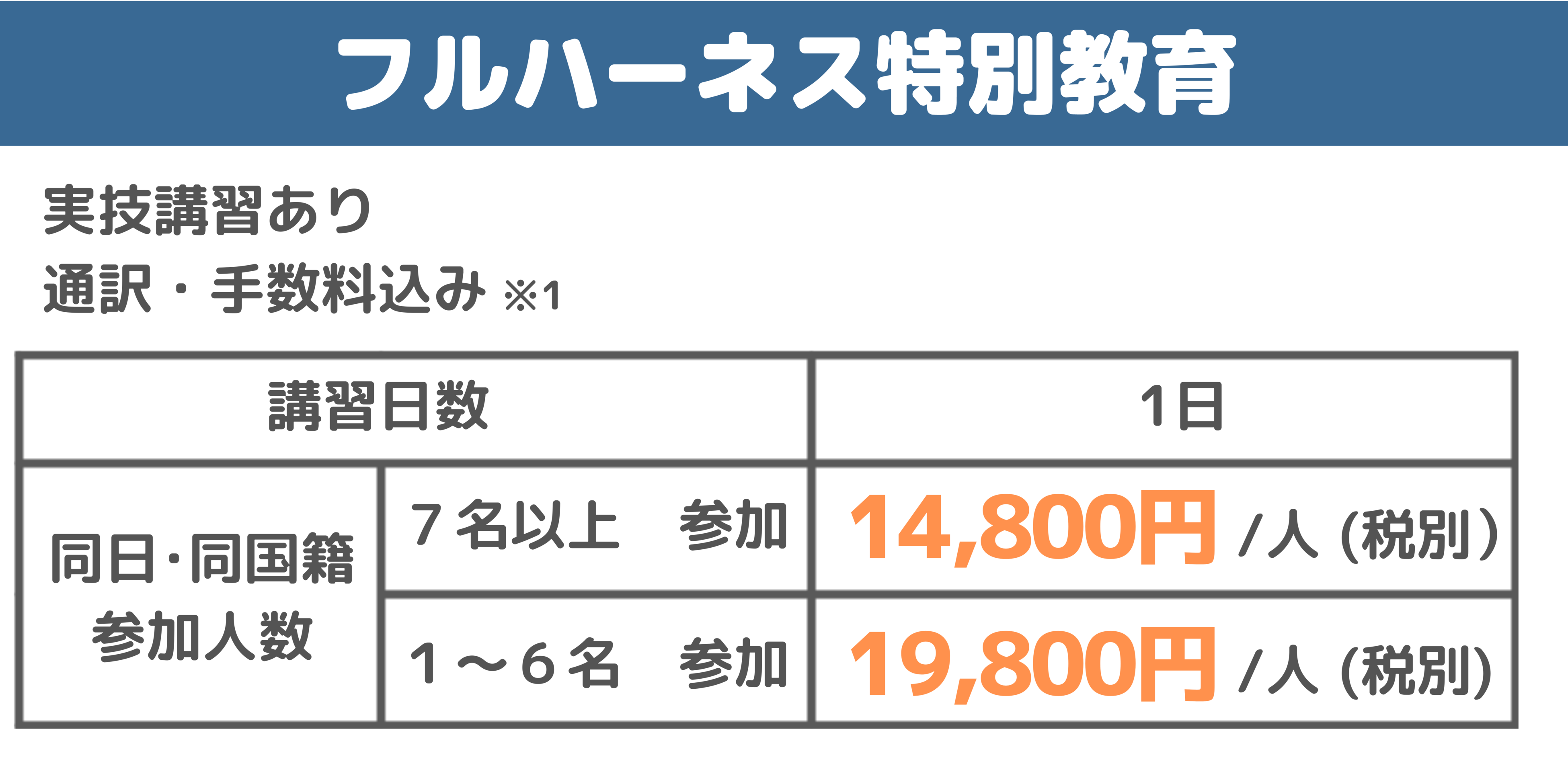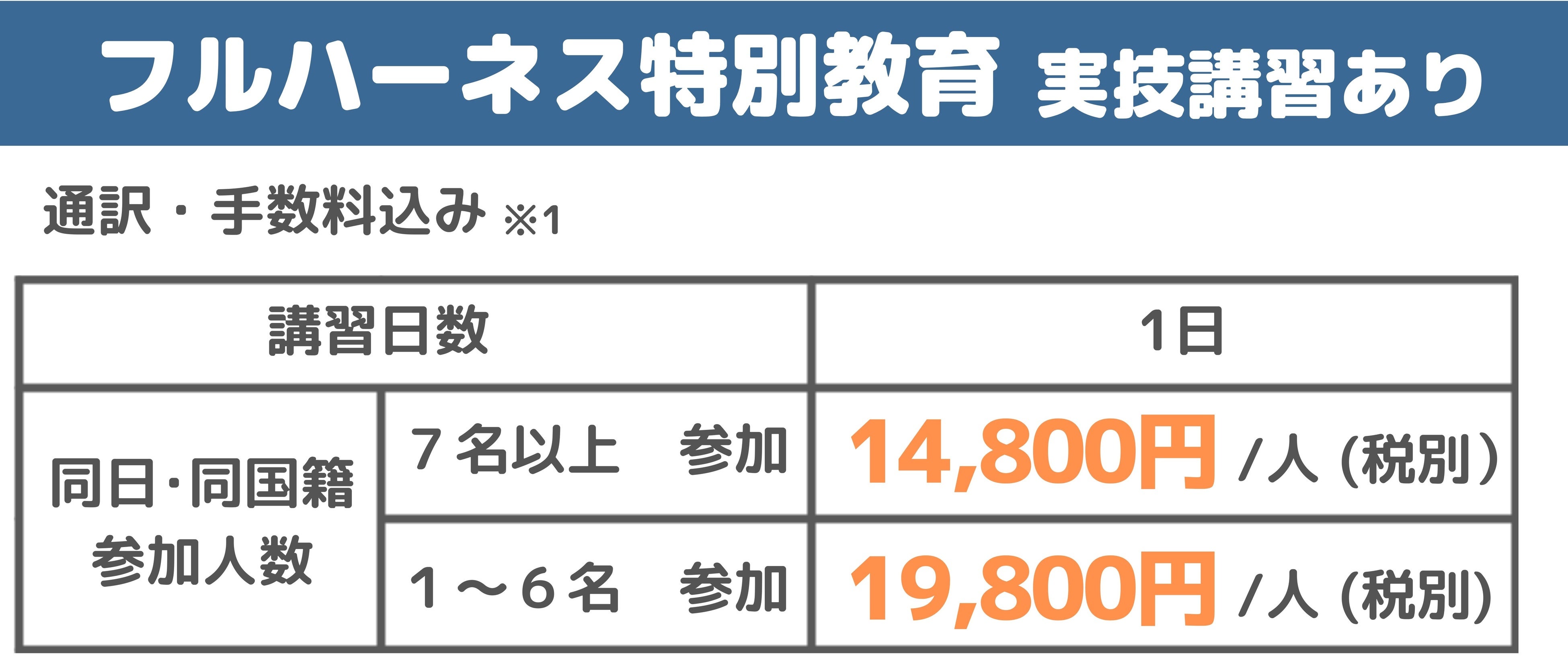 ※ 上記料金は入国後講習(集合講習プラン)をお申込み頂いたお客様の特別料金です。