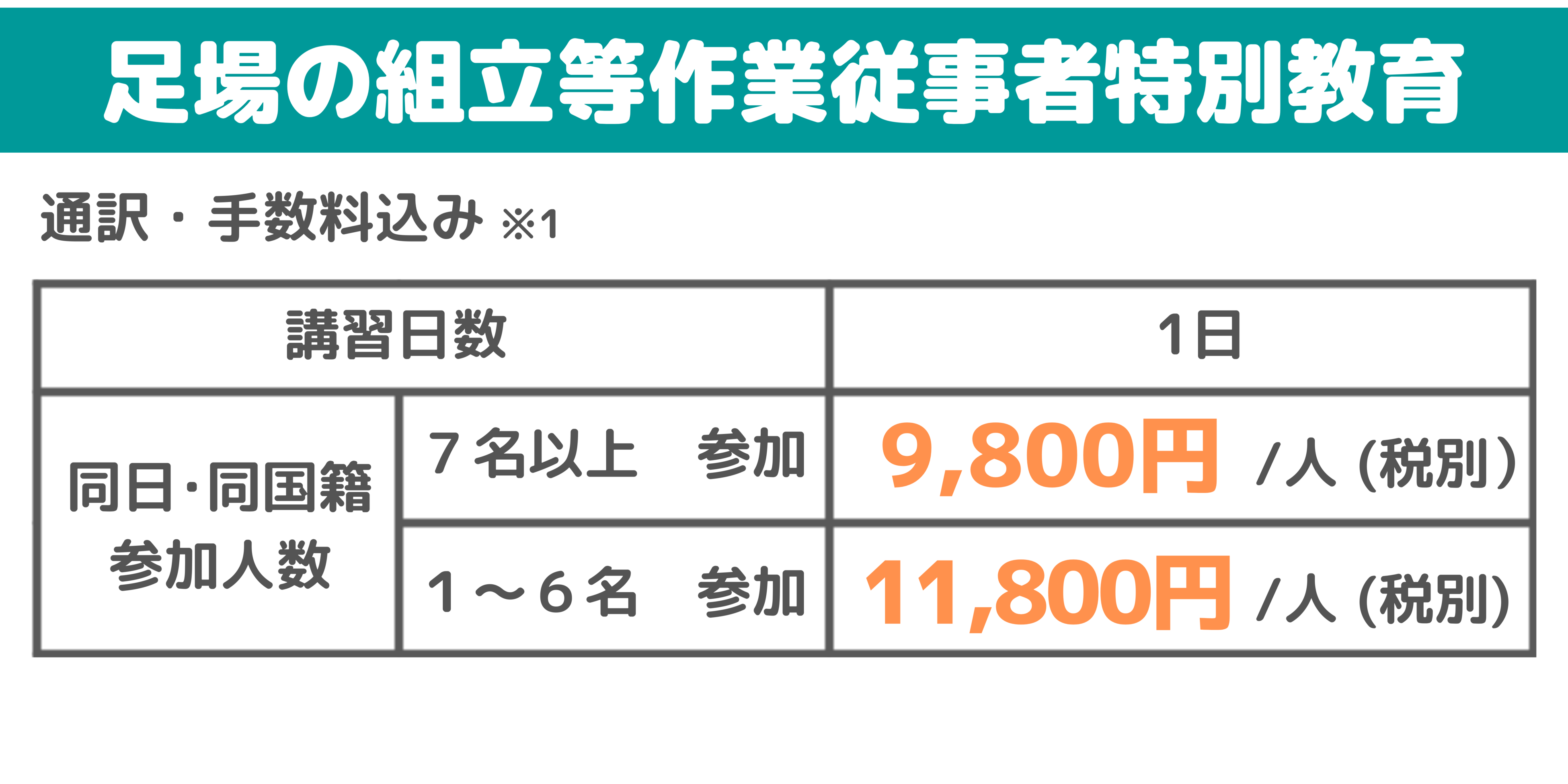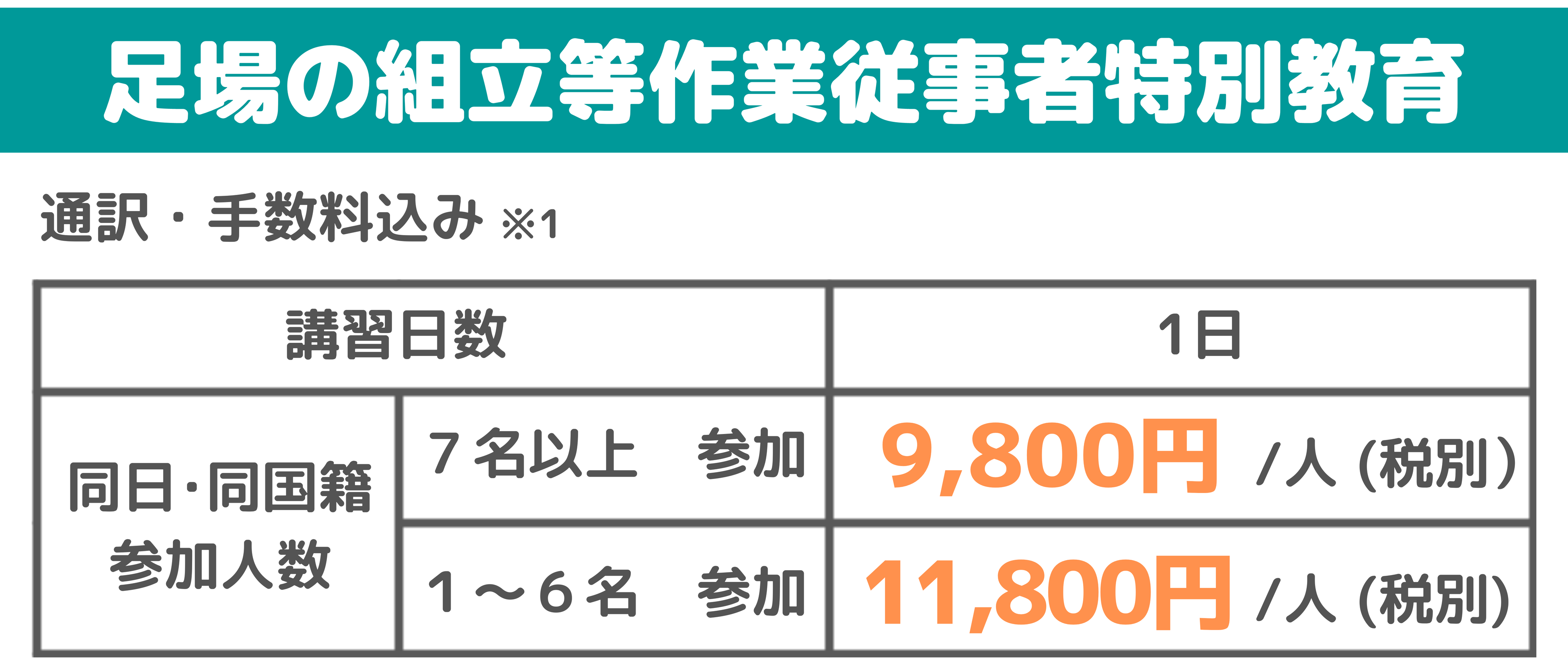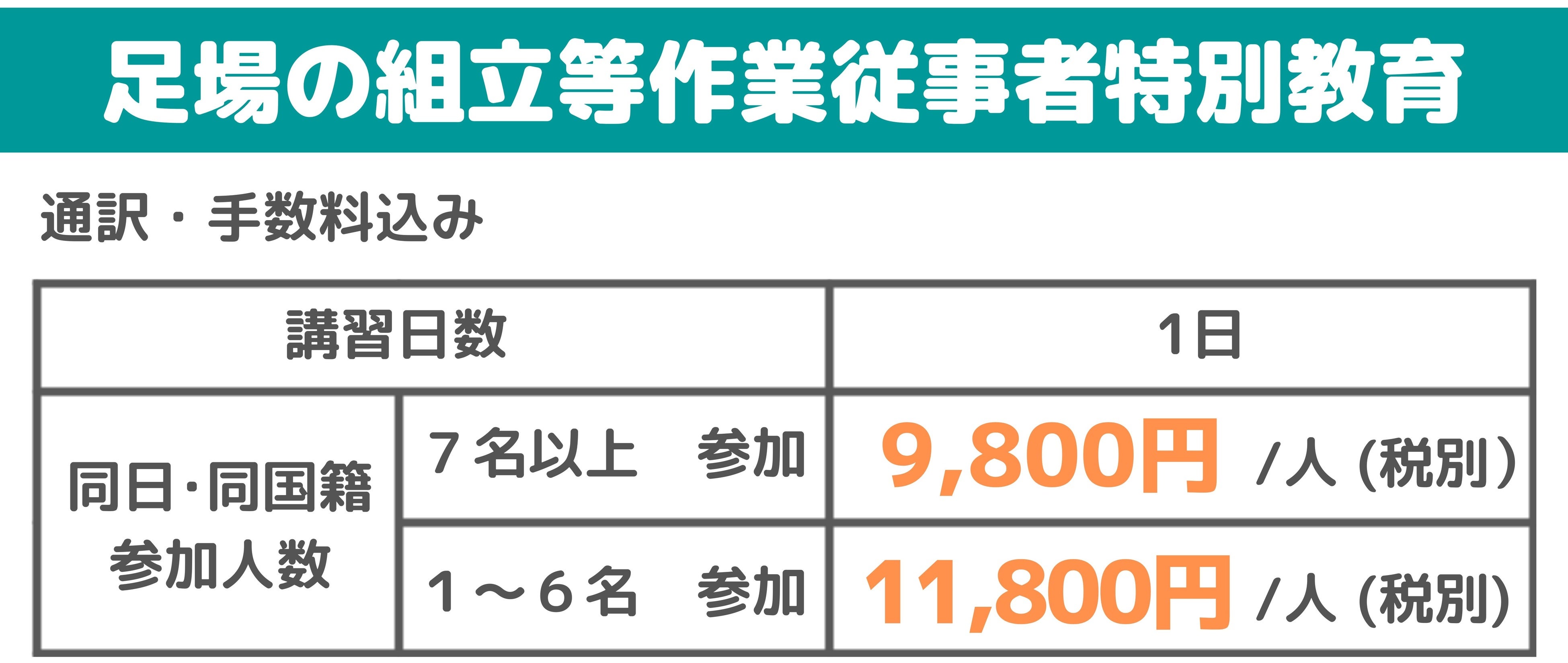 【足場の組立等作業従事者特別教育】【フルハーネス特別教育】が入国後講習中に受講できるようになりました。