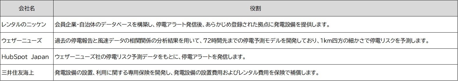 そこで、連携する4社で検討を重ね、停電リスクを事前予測して停電アラートを発信し、災害発生前に発電設備を設置するサービスを開発しました。