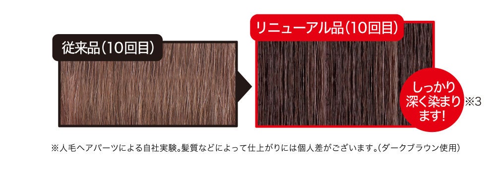 お客様のお声から「染毛力」にこだわって開発を進め、染毛力149%アップ※1を実現しました。