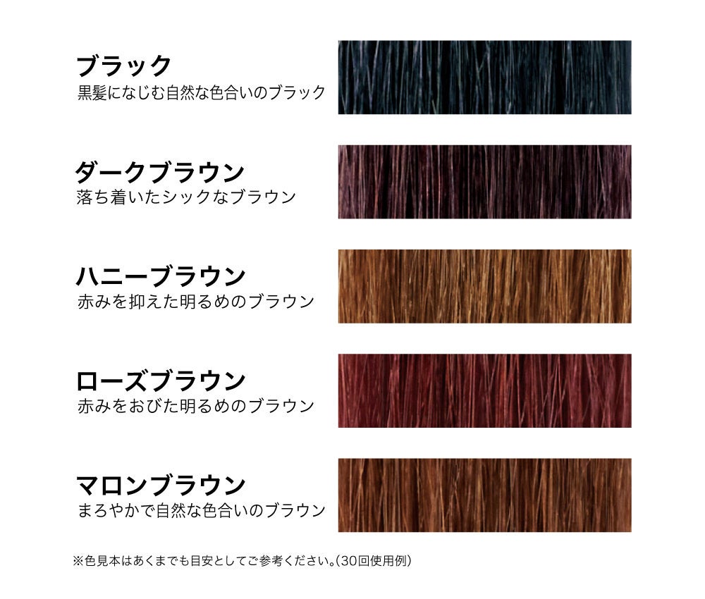 従来の人気色はそのままに、より白髪が目立ちにくく黒髪に自然になじむ色揃えに改良しました。今までよりも深く艶やかな色に仕上がります。