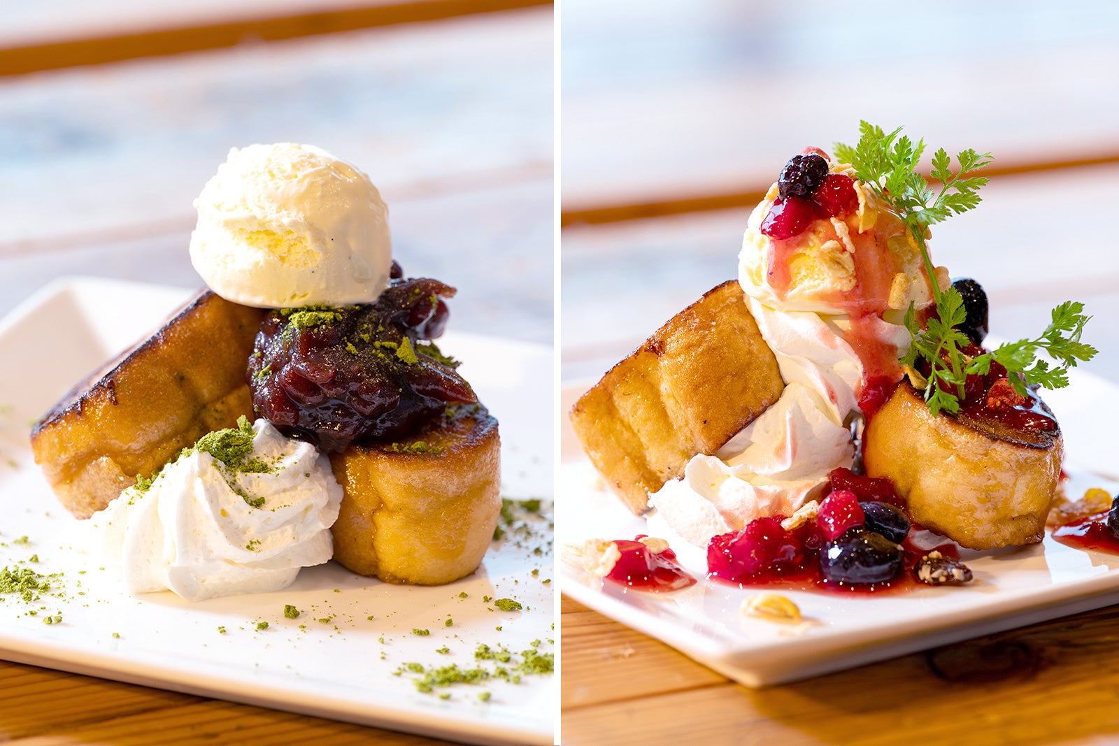 ホテル特製の「黒糖フレンチトースト」は、香ばしい黒糖の甘みがふんわりと広がる人気の逸品。外は香ばしく、中はとろけるように柔らかく焼き上げました。フルーツやホイップクリームを添えた洋風アレンジのほか、きな粉やあんこを合わせた和風アレンジもおすすめ。お好みに合わせて、自分だけの“オリジナルフレンチトースト”を楽しめる自由なスタイルも、ハレアスならではの魅力です。