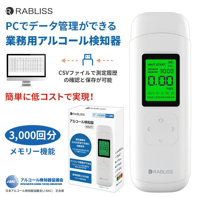 PCでデータ管理ができる アルコール検知器 測定履歴をらくらく保存!