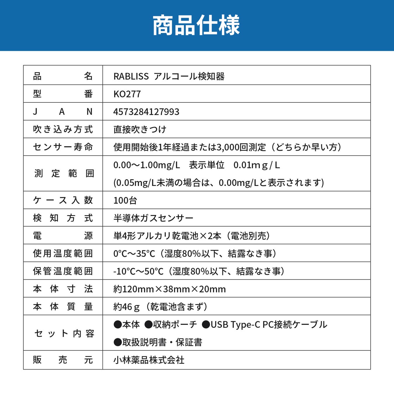 - RABLISS アルコール検知器 KO277