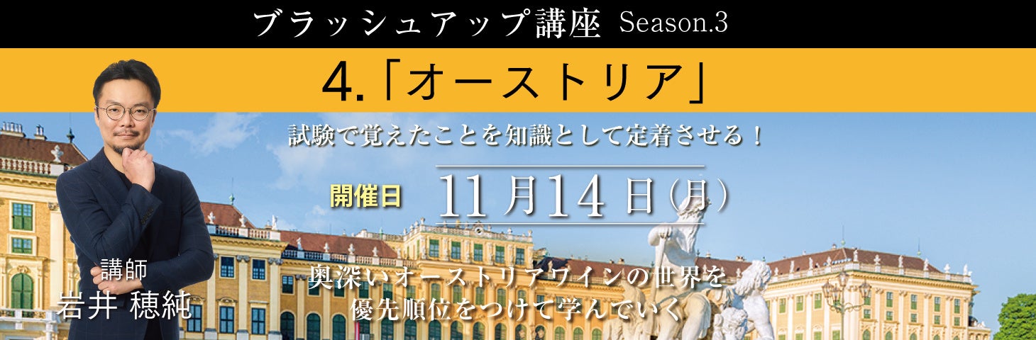 講座名:「ソムリエ・ワインエキスパート ブラッシュアップ講座Season.3 オーストリア編」
