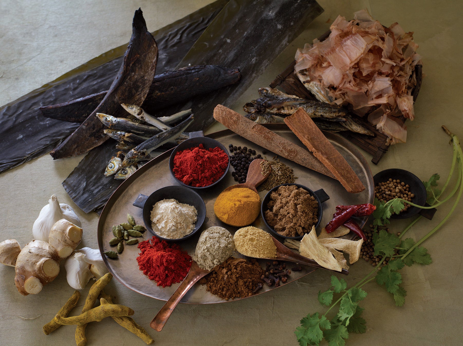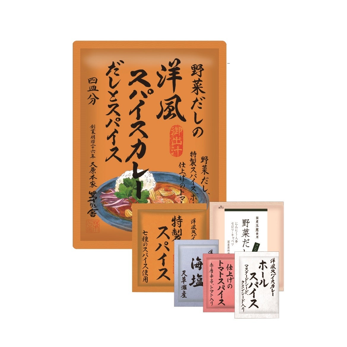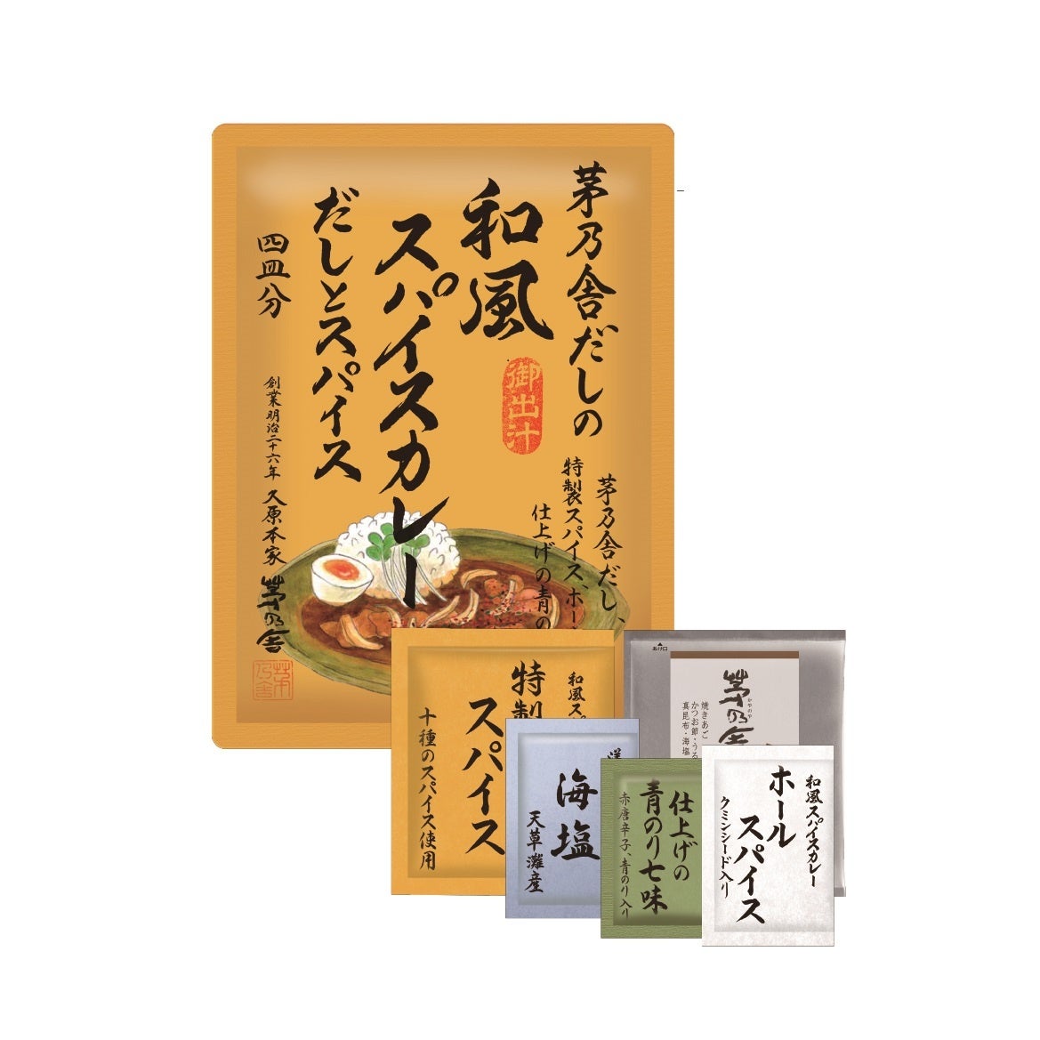 ●内 容:茅乃舎だし1袋、ホールスパイス1袋、特製 スパイス1袋、海塩1袋、仕上げの青のり七味1袋(使用スパイス) コリアンダー、ローストガーリック、ジンジャー、ターメリック、パプリカ 、カルダモン、クローブ、シナモン、ブラックペッパー、唐辛子、クミン