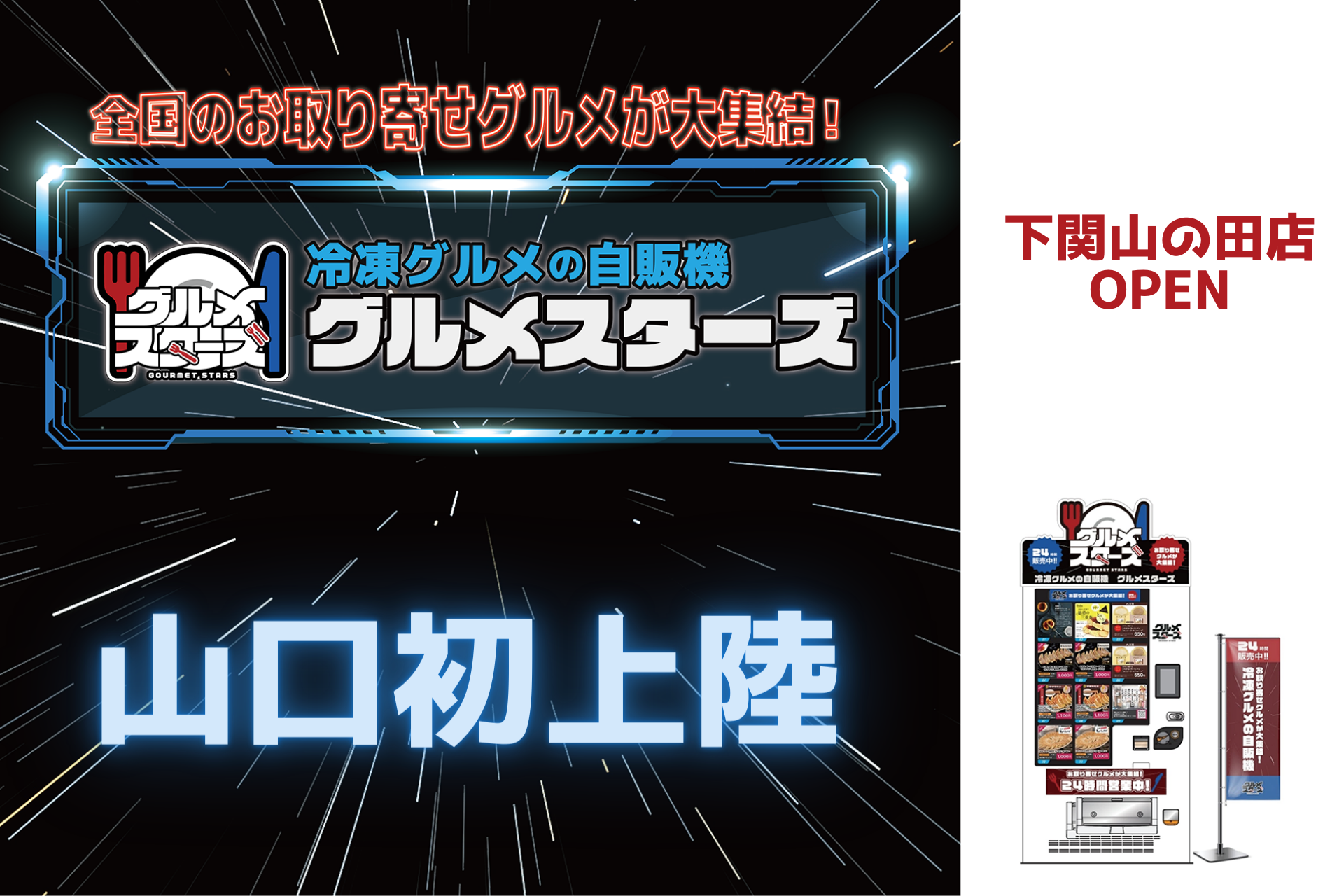 全国のお取り寄せグルメが大集結!冷凍グルメの自販機「グルメスターズ」下関山の田店オープン!
