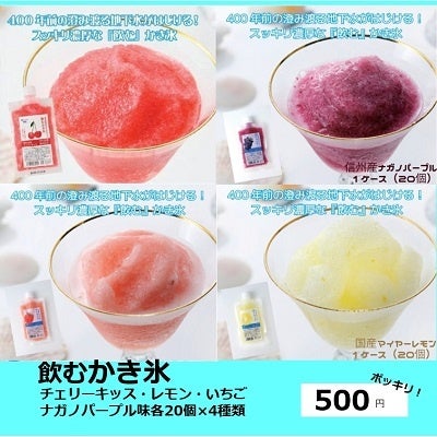 ■商品名:飲むかき氷 (チェリーキッス、いちご、レモン・ナガノパープル各1)