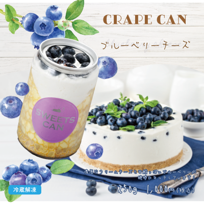 ■商品名:クレープ缶 ブルーベリーチーズ 250g