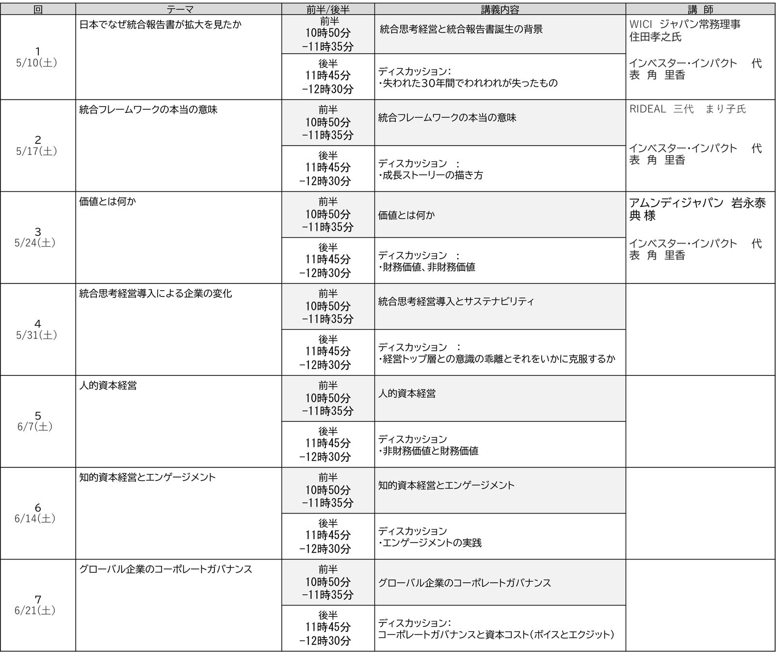 講義と議論を通じて、統合報告書の未来を理解するプログラムになります。
