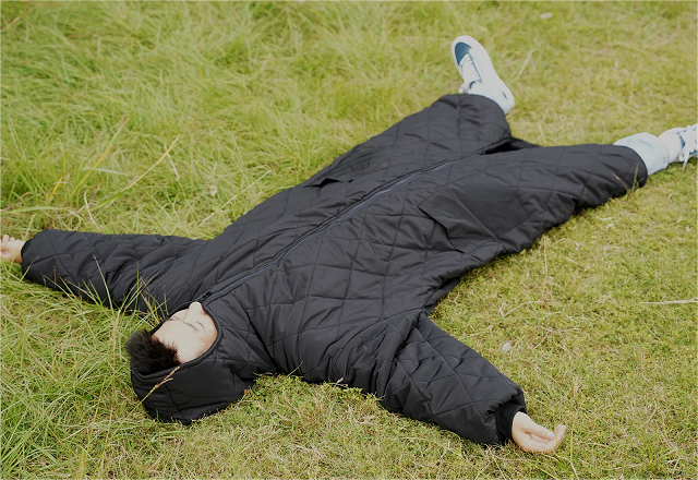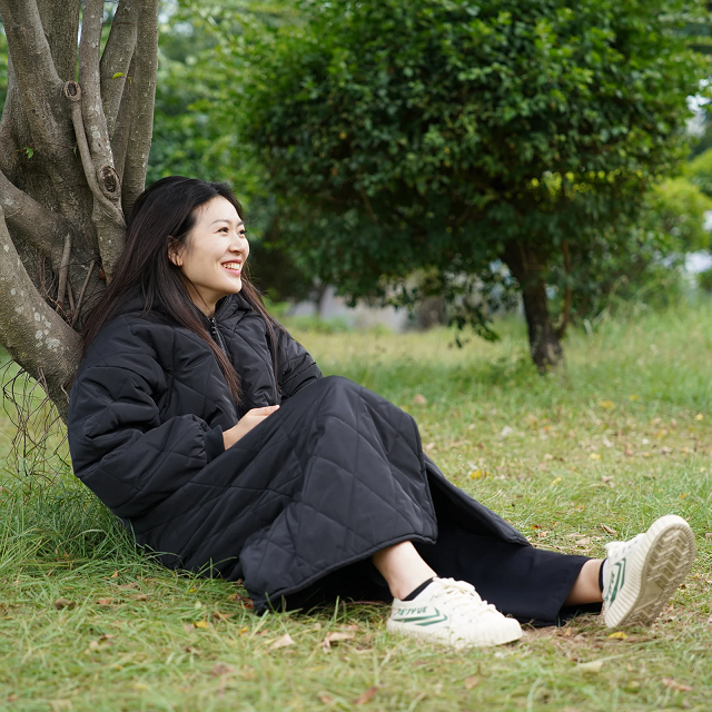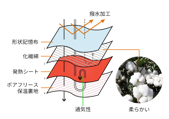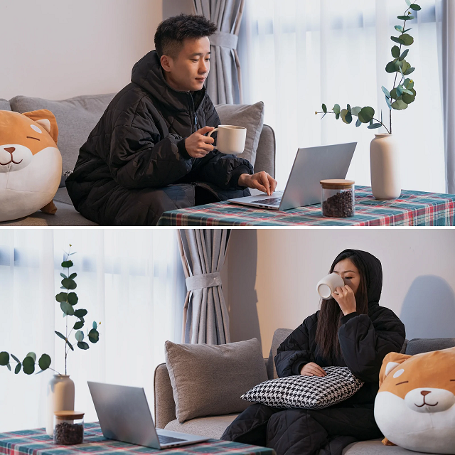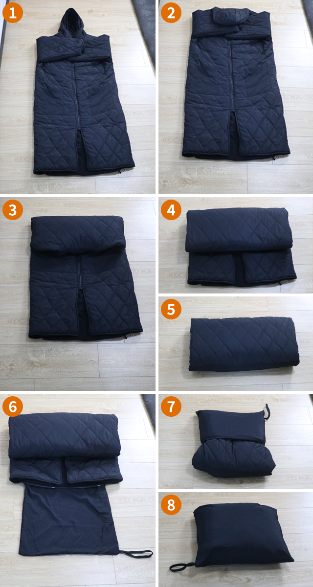 「ジャケットWARM」にはカバーが内蔵されており、クッションの形に直接収納できます。