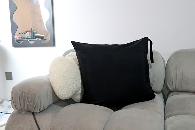 普段はクッションとして使用可能!なお、付属の真空袋に収納可能でスペースを取らない