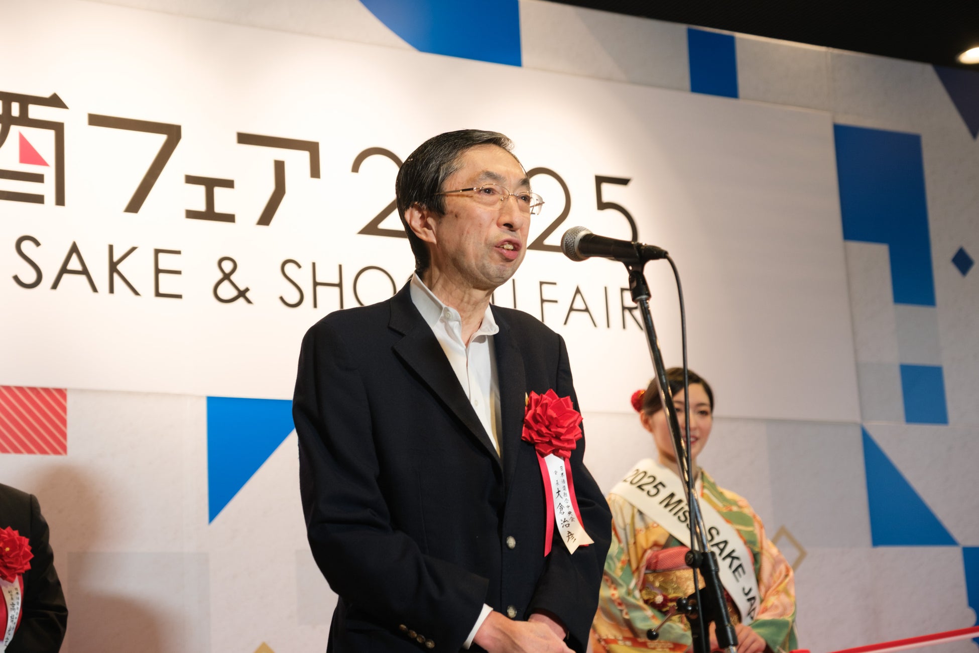 オープニングセレモニーでは日本酒造組合中央会の大倉 治彦行会長から「昨年12月に伝統的酒造りがユネスコ無形文化遺産に登録されたことを記念し、国内最大級のイベント國酒フェア2025を大阪関西万博が開催されている大阪で開催。このイベントでは全国の酒造組合のブースが出展され、各地の風土・文化などその地域のならではのテーマにそった國酒の魅力を体験できるためぜひ楽しんで頂きたい」という趣旨のコメントでセレモニーがスタート。