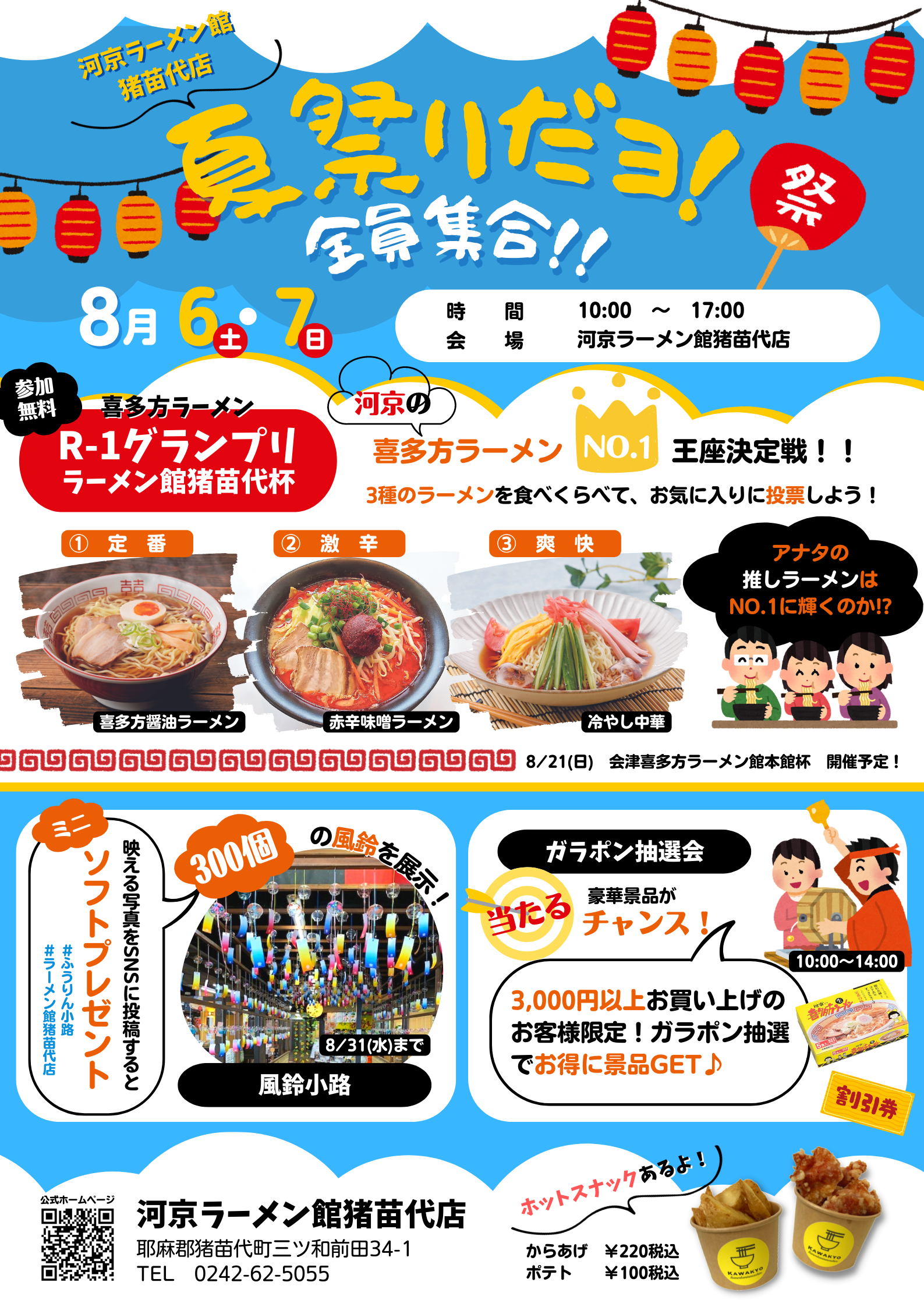 この夏、河京ラーメン館猪苗代店で“夏祭り”開催します!