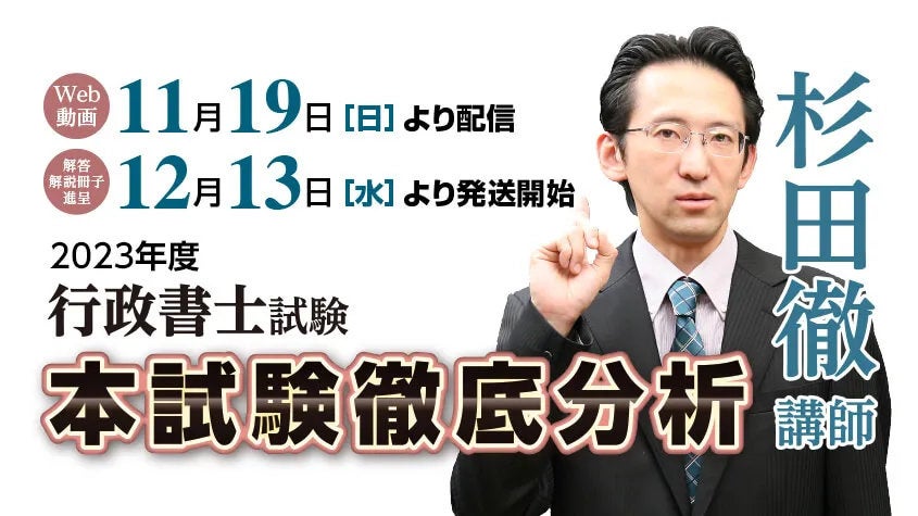 2023年行政書士試験の当日、杉田 徹 講師による本試験分析動画(速報版)を無料配信いたします。