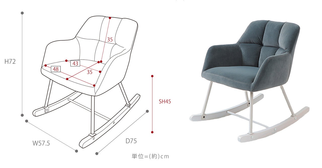 - サ イ ズ :(約)幅57.5cm×奥行75cm×高さ72cm 座面高(約)45cm