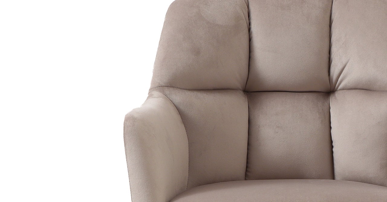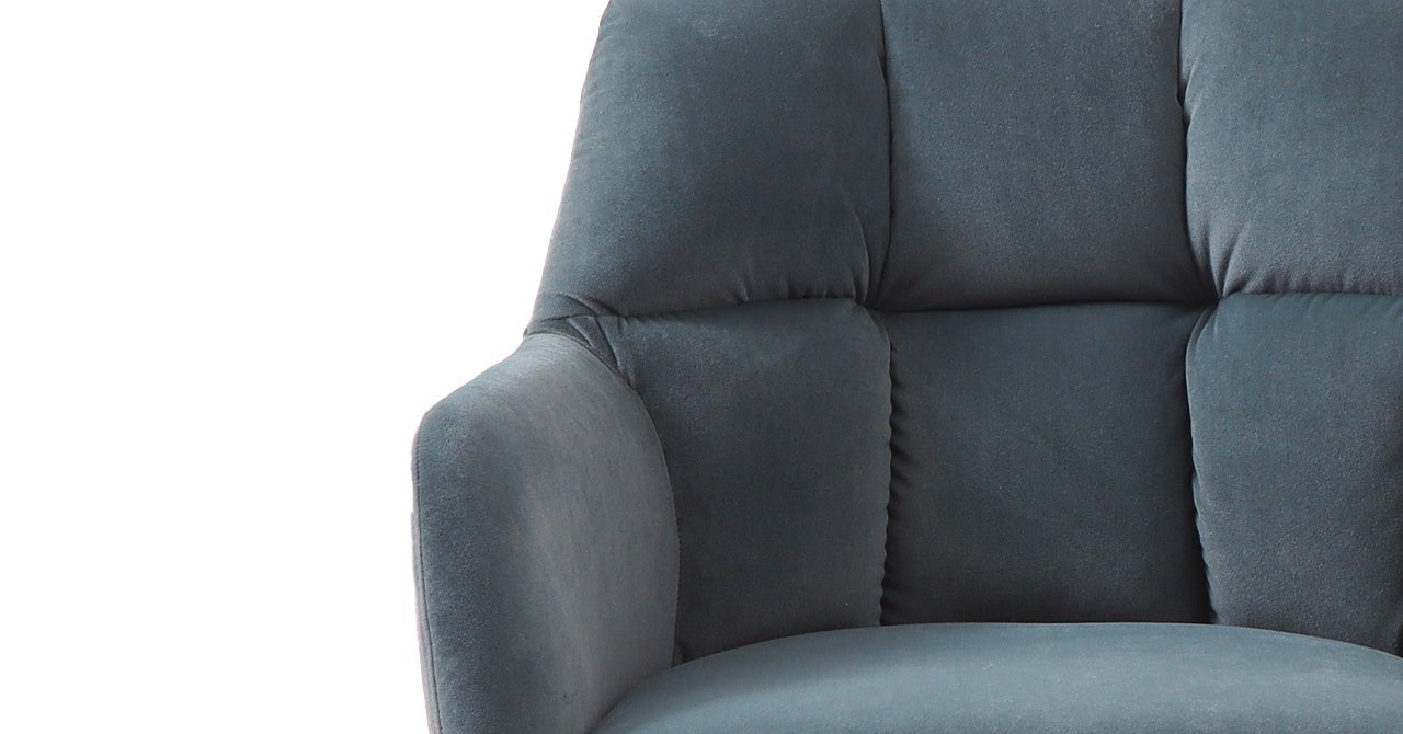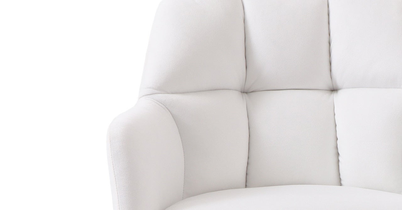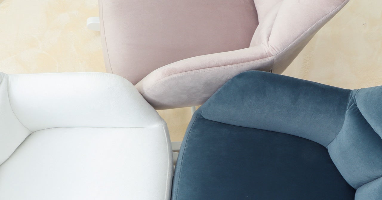 しっとりとやわらかいベロア生地は光沢があり、光の当たり方によってさまざまな色合いに見え表情が豊かなことも魅力。白で統一された脚部との絶妙なカラーコンビネーションが上品な雰囲気を醸し出しています。