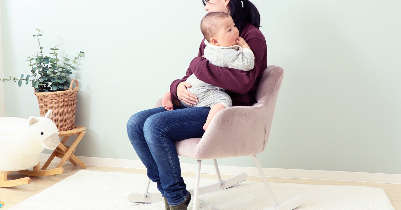 抱っこしていないと泣いちゃう赤ちゃん。抱っこして立ったままゆらゆらするのはママにとっては相当な負担が。そんな時は、ママが抱っこしたまま座れるロッキングチェアが大活躍。ゆりかごのような前後の揺れは寝かしつけにもぴったり。