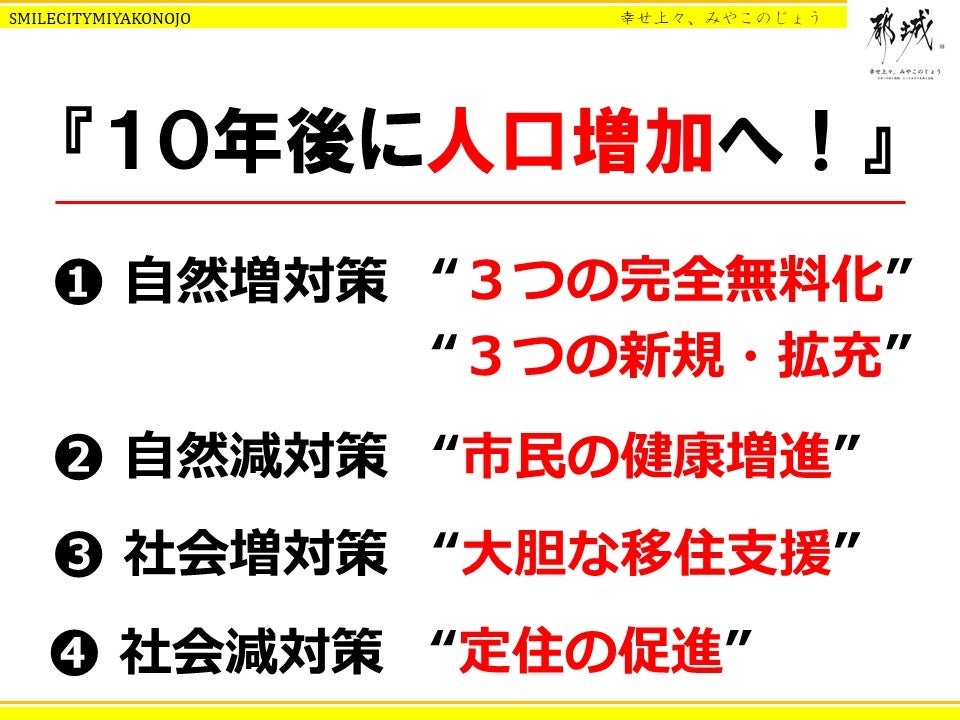「スマイルシティ都城・未来飛躍予算」~ 10年後に人口増加へ! ~