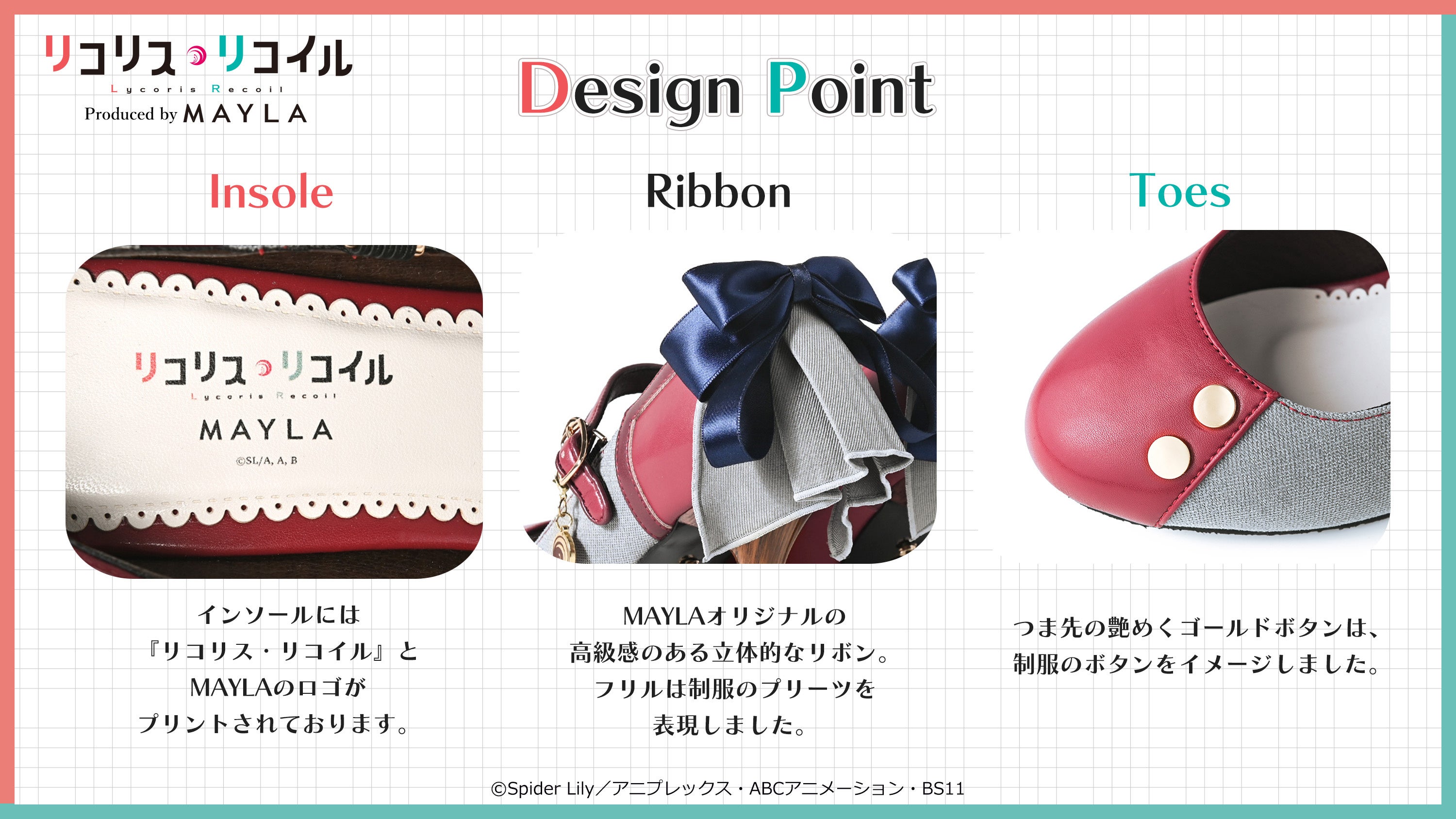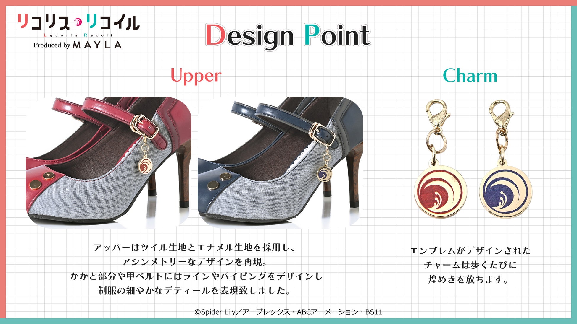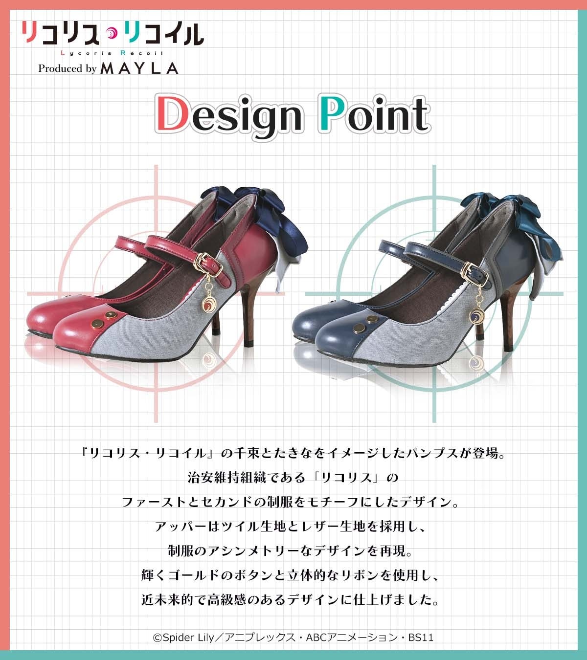 『リコリス・リコイル』の千束とたきなをイメージし、デザインの随所にMAYLAの想いと解釈を込めたパンプスが登場!