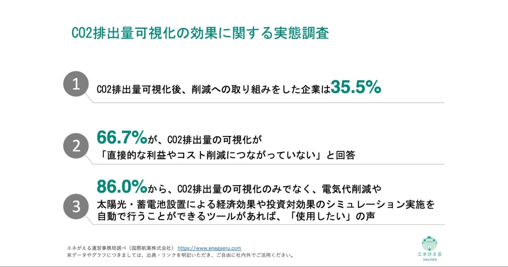 〜約7割から、CO2排出量の可視化が「直接的な利益やコスト削減につながっていない」と悩みの声〜