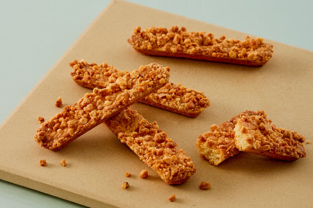 芳ばしく広がるクロッカンやパイ、クランチアーモンドの心地よいザクザク、カリカリとした食感。バターとアーモンドプードルを練り込んだサクサクとしたクッキー生地を組み合わせて、香りたかく風味ゆたかに焼き上げました。