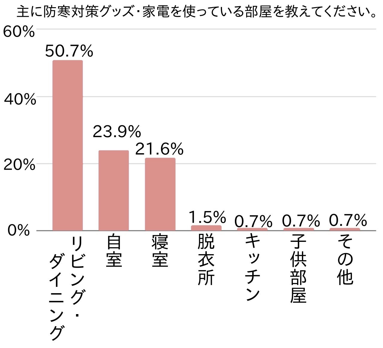 続いて、主に防寒対策グッズ・家電を使っている部屋はどこか尋ねてみました。